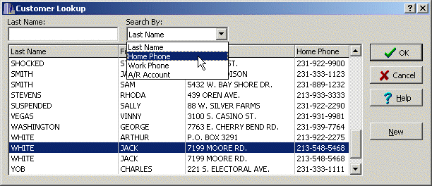 the following screen for retrieval. In addition, you can access a pull-down menu