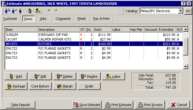 brakes are are totaled into a job), the entire brake job can be declined by